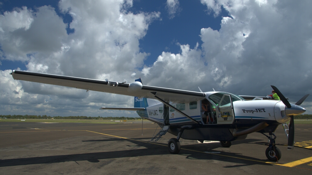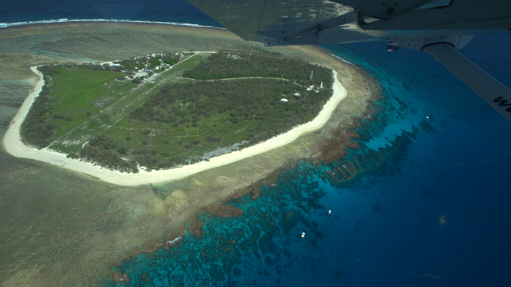 Tag 1: Heute muss ich früh aufstehen (7am). Kaum ist das Frühstück im Magen düse ich schon los und zwar ohne Stopp nach Bundaberg – Nein, nicht um den Rum zu trinken, noch nicht 😀 In Bundaberg wartet auf dem regionalen Flughafen mein Flieger auf mich…. mh oder besser gesagt, ich auf den Flieger. Ich mache jetzt etwas, was sonst kaum ein Backpacker tut. Das ist eben das Coole daran, nämlich nicht nur auf den typischen Backpackers Pfaden zu reisen 🙂 Diese Exklusivität ist aber leider auch recht teuer. Aber egal, ich fliege jetzt nach Lady Elliot Island und lasse mein Auto beim Flughafen stehen. Am Flughafen ist kein Mensch, aber alles ist offen. Check-In, Departure und Arrival Hallen, inkl. Sicherheitscanner usw.. Es ist so ruhig hier als stünde der Weltuntergang bevor. 30min vor dem Flug stehe ich also nun da und kein Mensch ist hier. Mein Flieger ist nicht mal auf der Anzeigetafel. Noch 15min vor dem Flug und ich frage mich schon langsam, was hier eigentlich falsch läuft? Und in diesem Moment kommt plötzlich ein Pilot in die Check-In Halle und ruft zu mir „Lady Elliot?“ – Der Moment der Erlösung 😀 Mit dem Pilot gehts raus, einmal um die Halle und durch die Hintertür auf den Flugplatz wo der Flieger wartet 😀 Kein Check-In. Sicherheitskontrolle? Nö 😀 Man wird persönlich vom Pilot abgeholt. Genau das liebe ich an diesen kleinen Flügen – einfach einsteigen und losfliegen 🙂 (ich war allerdings nicht der einzige Passagier, die anderen wurden bereits am Hervey Bay abgeholt).